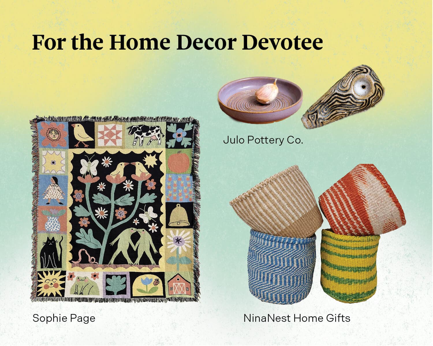 Based in Holden, Massachusetts, NinaNest Home Gifts partners with Mbitini Women Weavers in Kenya and Thiès Artisan group in Senegal to create masterfully woven baskets, wall decor, wooden bowls, bags, and more. Through their Etsy shop, mother-daughter duo Aidah and Nina offer a wide array of ethically handmade and sustainable home goods to grace your giftee’s living room or kitchen.