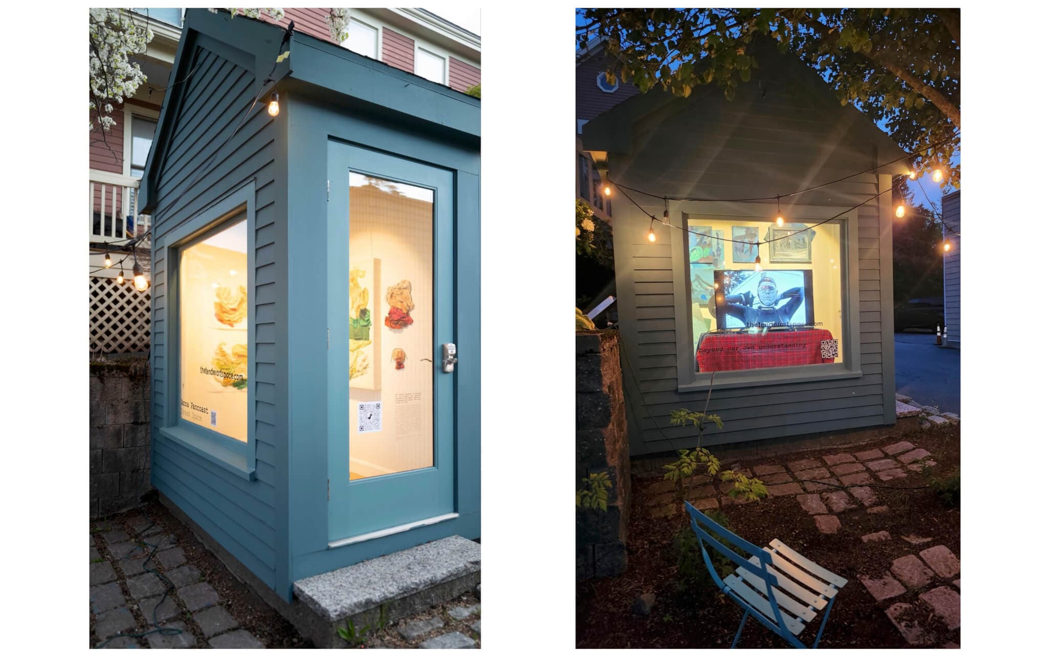 Spencer found a place full of possibility when she spotted a For Rent sign on a small shed near the West Concord Commuter Rail stop. Already equipped with a big window and a keypad-locked door, the structure had originally been intended to house a flat-screen advertising real estate listings, but it never ended up being used for that purpose. Instead, since the Tender launched in April of 2023 with a show of Spencer’s art, it’s hosted everything from Destiny Palmer’s mixed-media work and Joetta Maue’s photographs on fabric to M’Kenzy Cannon and Maya Rubio’s “public bathroom” sculpted from plaster and—on view now—invitations to movement from choreographer Jessica Roseman.