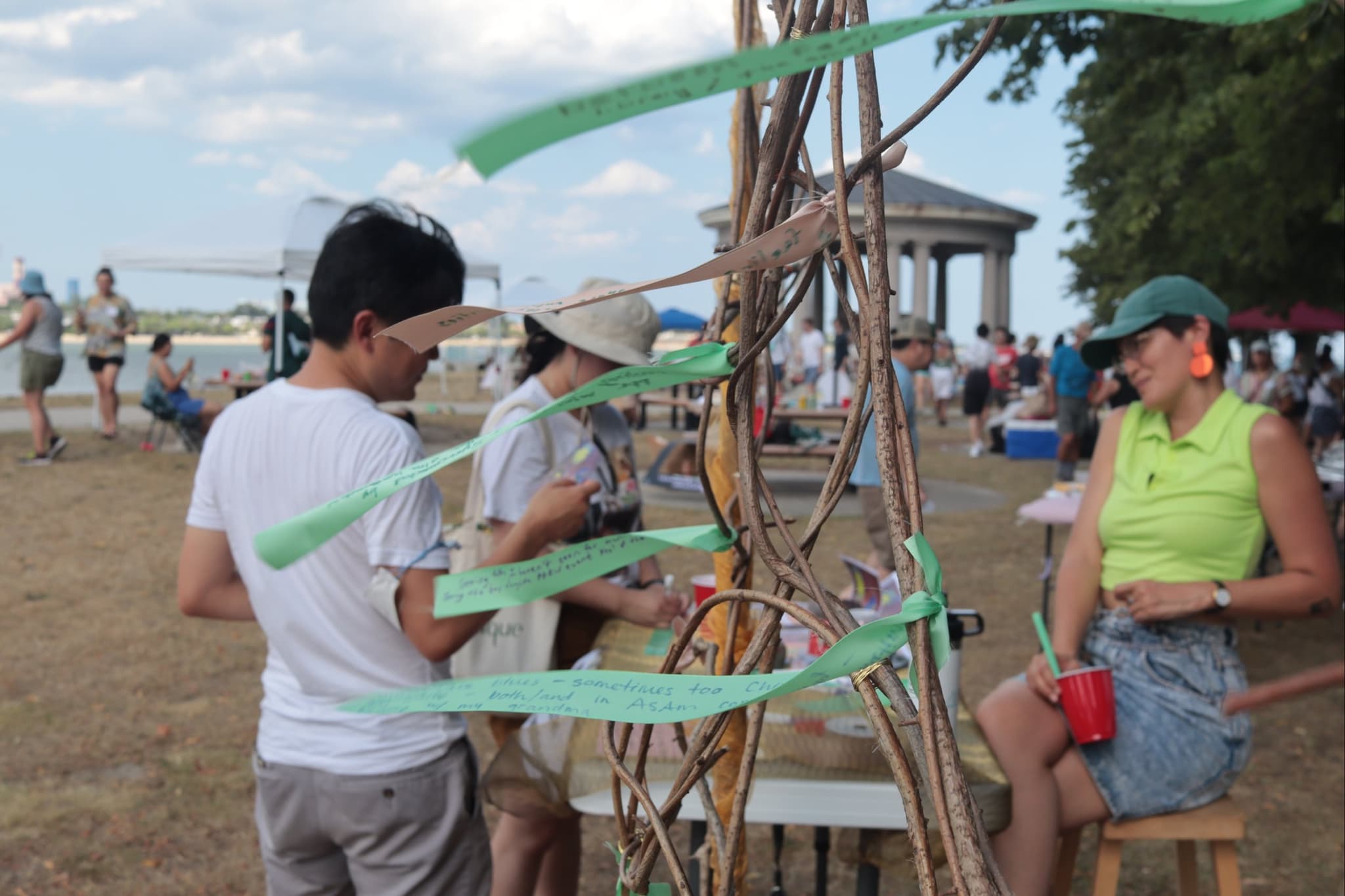 On August 6, Dzidzor Azaglo and Crystal Bi presented an early version of “Wilderness Project” at Carson Beach as a part of the Asian American Resource Workshop Summer Celebration. Photo by Rene Dongo.