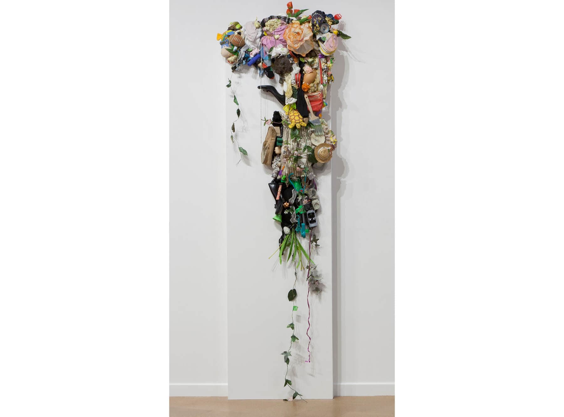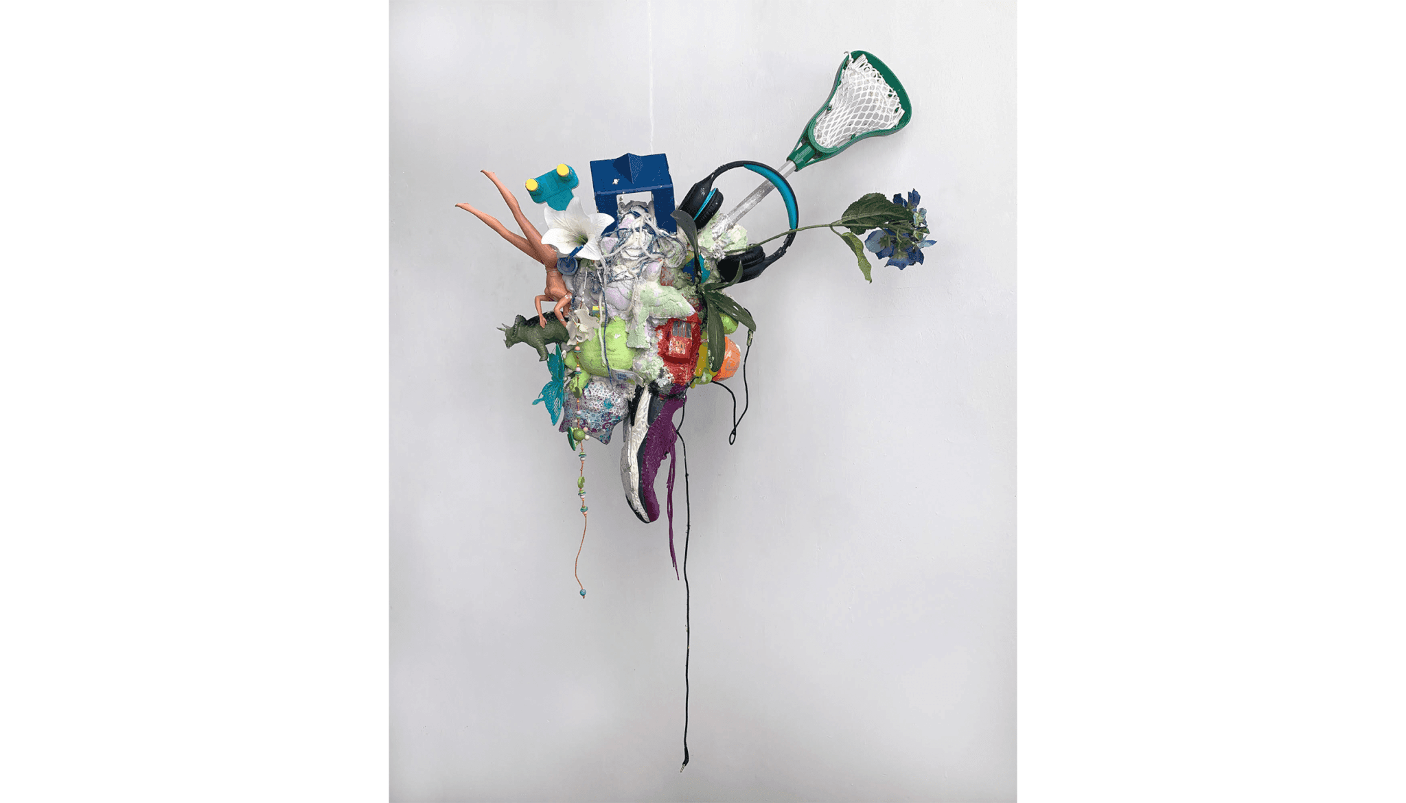 While the assortment of items intertwined in her sculptures appears to be whimsical at first glance, her work speaks to our crisis of overconsumption as well as the weight of motherhood amid climate change and “the mental load that women carry around.”