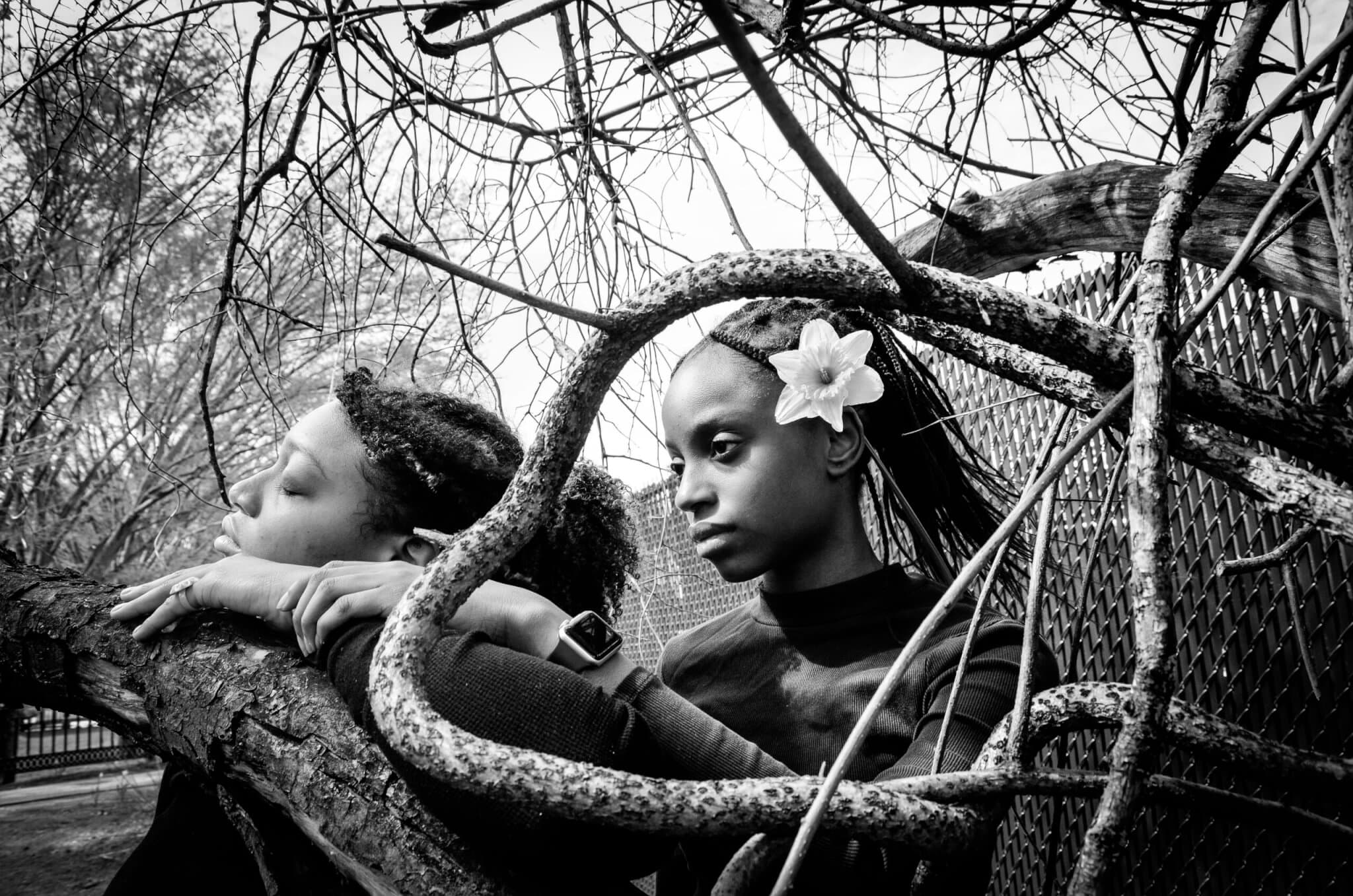 Kristen Joy Emack has been photographing her daughter and nieces for over a decade. Her black-and-white images capture the essence of the girls as they navigate the journey of growth, embracing moments of joy and fostering deep bonds with one another. Each frame—frozen representations of dynamic scenes—is a living time capsule. As her daughter and nieces have matured, they have become active collaborators in the project. Their voices craft intimate narratives through the exhibition labels, offering viewers an insight into the backstory behind the captured moment. “Cousins” is found in a quiet corner of the Boston Athenaeum. A selection of staff-recommended books, thoughtfully aligned with the themes explored in Emack’s photos, further enriches the experience, encouraging visitors to engage deeply with the imagery before them.