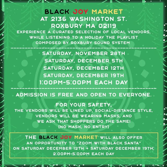 The Black Joy Market will run each Saturday in December. Image courtesy of Black Market.