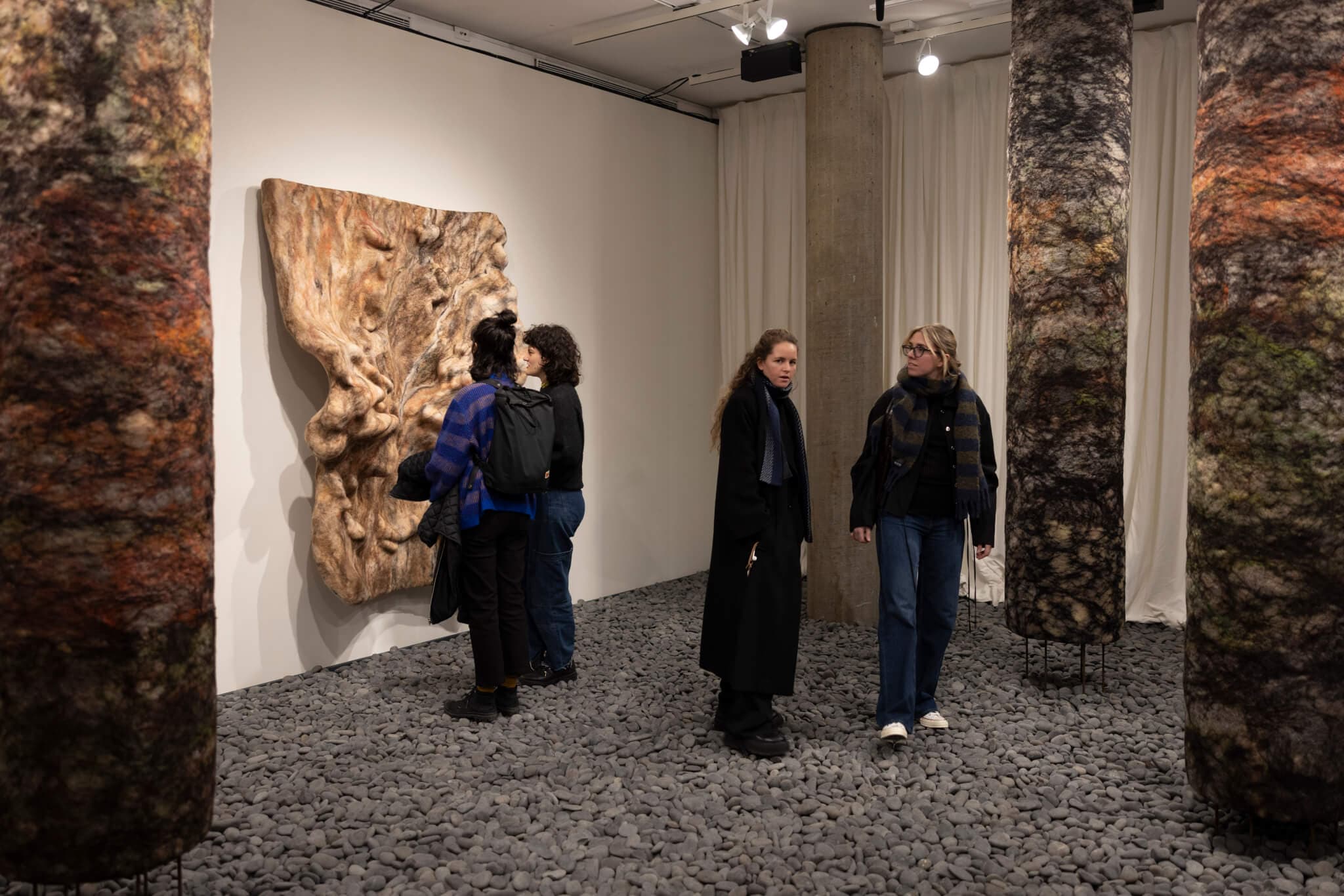 Sound art can be hard to come by, and Jacqueline Kiyomi Gork’s “Poems of Electronic Air” is the sonic art experience I’ve been waiting for. The highlight of the exhibition is a site-specific, interactive installation that engulfs visitors in an immersive echo chamber: every footstep across a rocky floor triggers a series of sonic feedback loops, which are absorbed to varying effects by the felted sculptures and columns in the gallery. Moving through the space, visitors become part of a live, sonic choreography that creates a unique listening experience in every corner. Other works consider the relationships between the body and architecture, such as a series of inflatable sculptures in the outdoor CCVA “pit” that rise and fall against a reverberating soundscape of blowers and music. Kyomi Gork’s show is an unusual opportunity for deep listening and attunement to our environment, making for a visceral, embodied experience like no other. —Gina Lindner