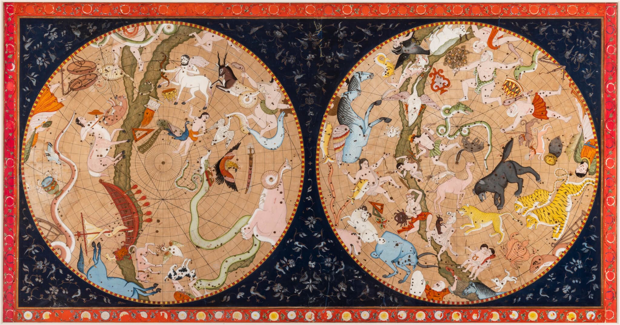 The dogmatic, gorgeously illustrated specificity of astrological and religious depictions in the first section engage with the gleaming scientific precision of navigational tools like astrolabes and sextants. Further in, visitors can discover medical devices and texts, examples of craft like fine fabrics, weaponry, ceramics, and glasswork, and architectural design, all broken into sections with titles such as The Animal, Plant and Mineral Kingdoms, Superlunaries: The Celestial Realm, and Healing, Protection, and Adornment.